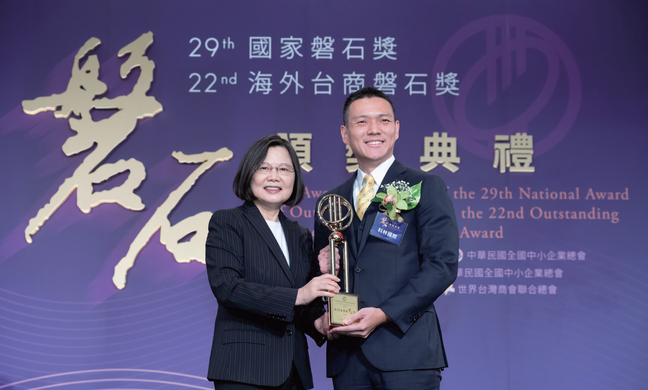 Awarded the National Award of Outstanding SMEs in Taiwan; also received the National Enterprise Award.